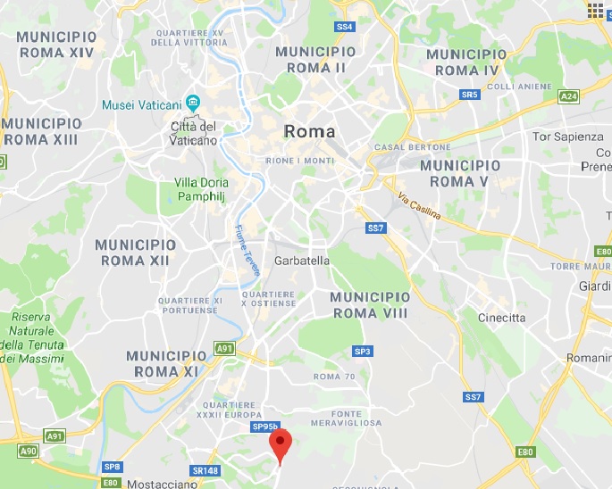 Proseguire per Via Laurentina a destra (800 mt – 10 min. a piedi ) fino al n° 289 (incrocio con Via delle Tre Fontane) o col BUS 671 scendere alla terza fermata “ Abbazia Tre Fontane “ e percorrere 150 mt.
