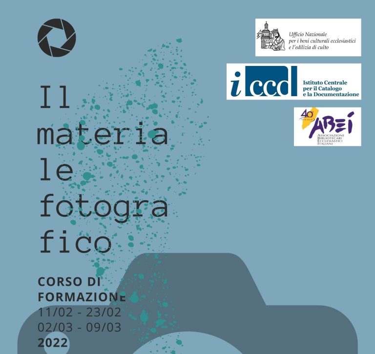 Si terrà il corso di formazione “Il materiale fotografico” promosso da Ufficio Nazionale per i beni culturali ecclesiastici e l’edilizia di culto della CEI, ICCD – Istituto Centrale per il Catalogo e la Documentazione e ABEI – Associazione dei Bibliotecari Ecclesiastici Italiani.